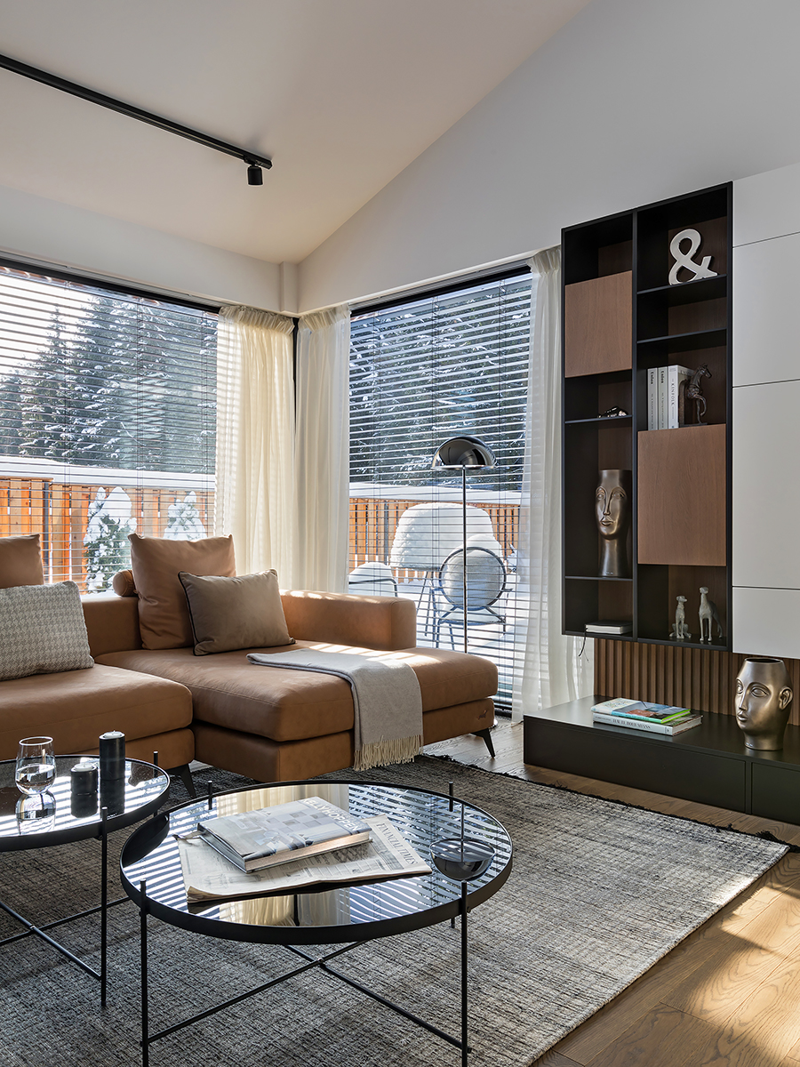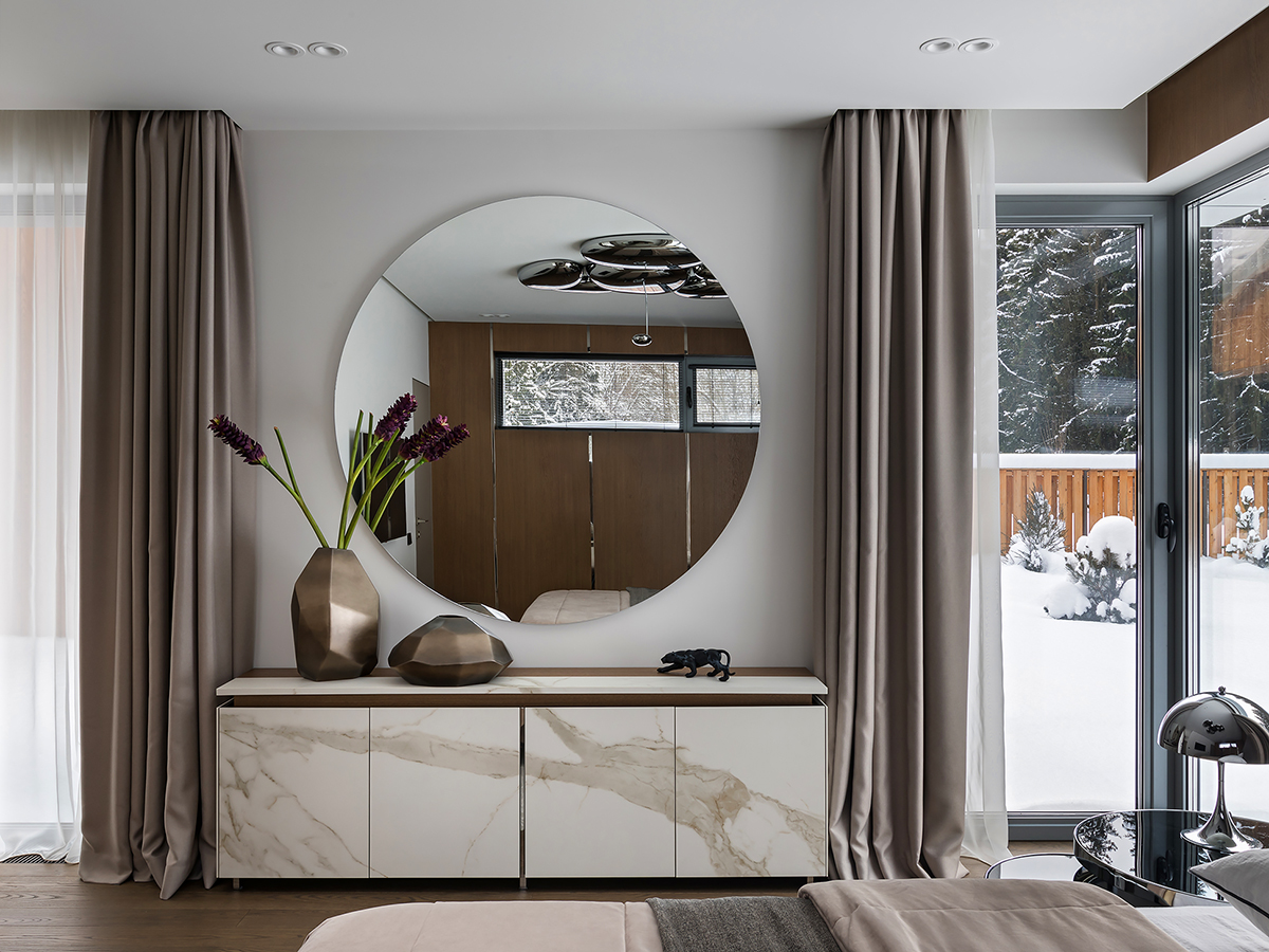Stylish, modern interior with catching architectural tools and absorbing monochromatism is a great solution. Almost magical landscapes and the view from panoramic windows have become the essential touch drawing attention against a restrained background.