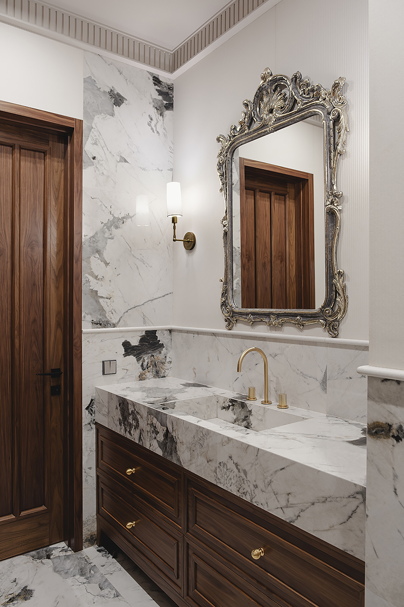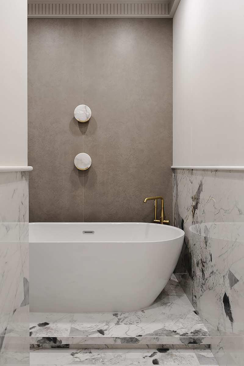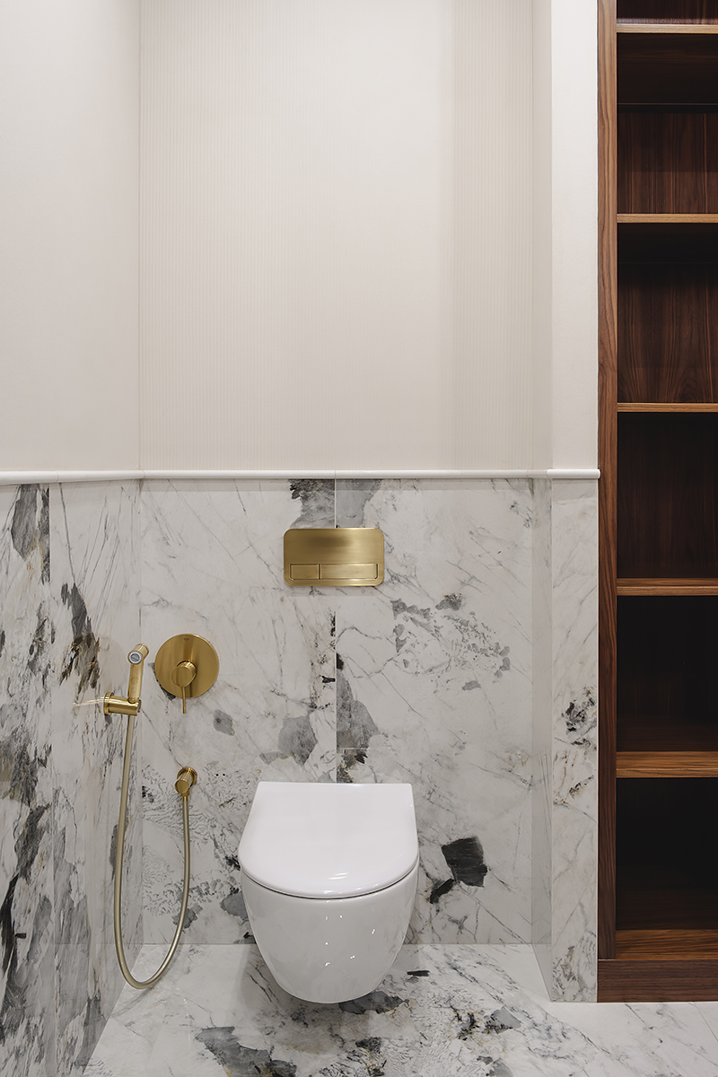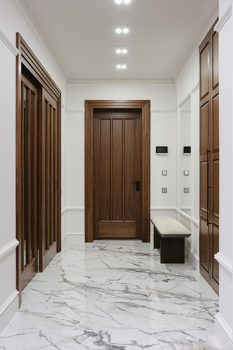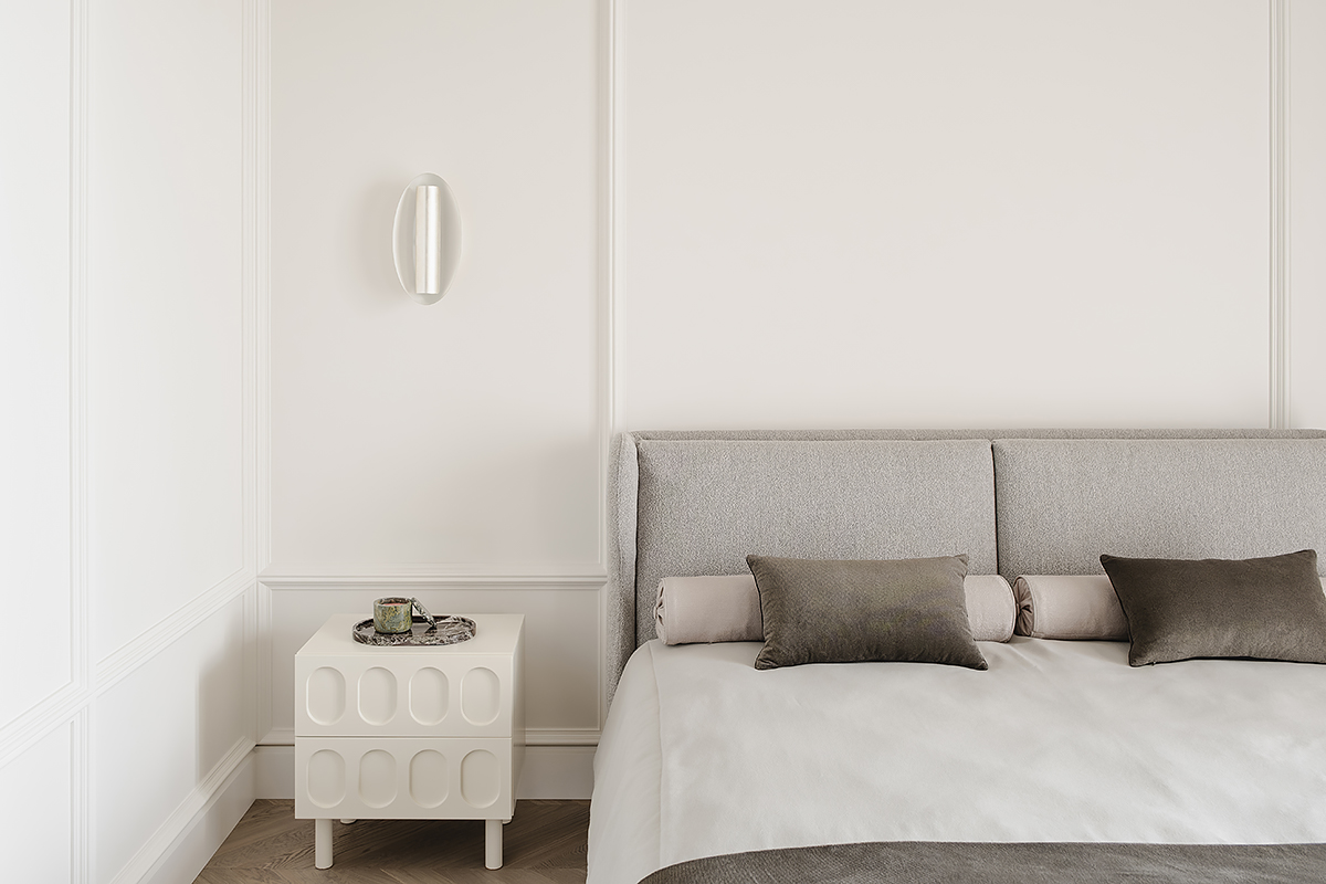 The space is shaped by clear geometry, built-in volumes and thoughtful zoning. Careful attention to proportions, textures and light creates a multi-layered and visually rich environment.