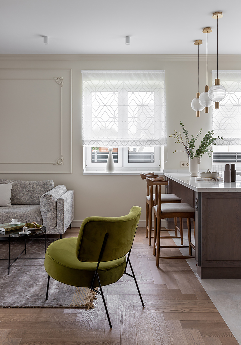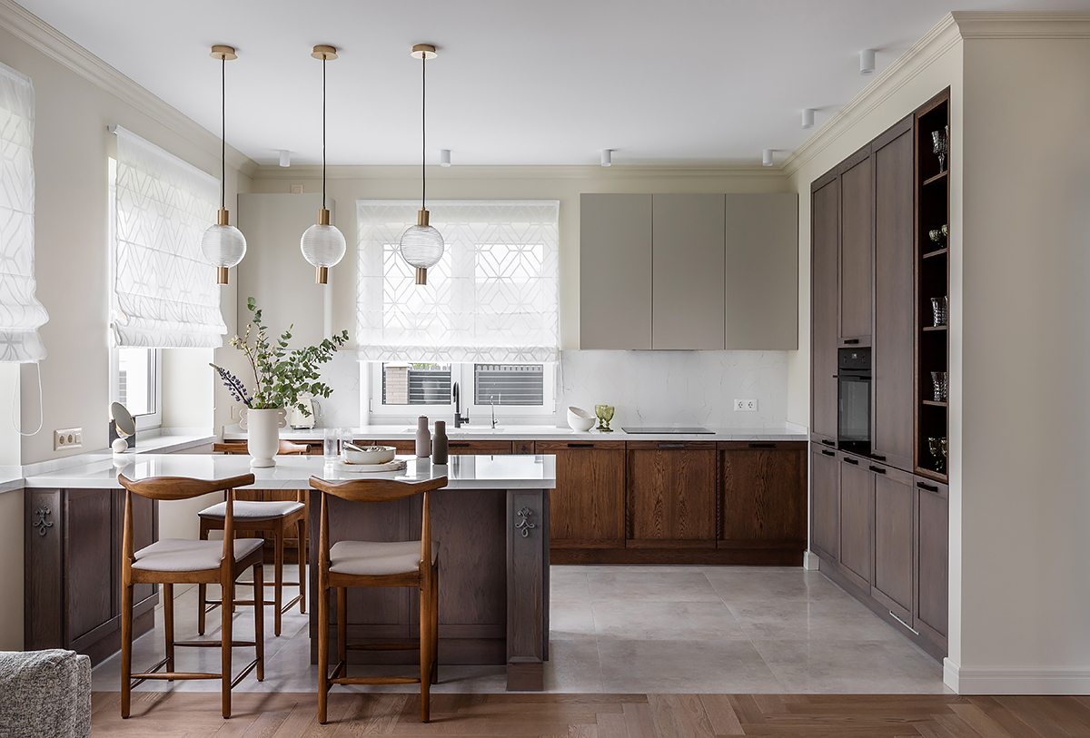 This is a story of how a well thought out interior design made a country house nearby Minsk into a family’s permanent residence. A functional layout, perfected design that uses natural materials and neutral tones, all of that was made to the customers’ wishes. The interior is cosy to the extent that the owners having spent a summer there had decided to move in permanently.