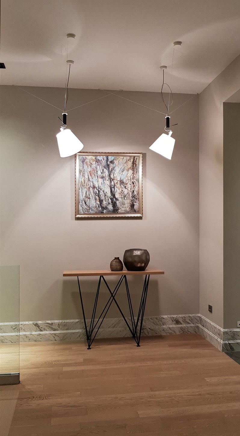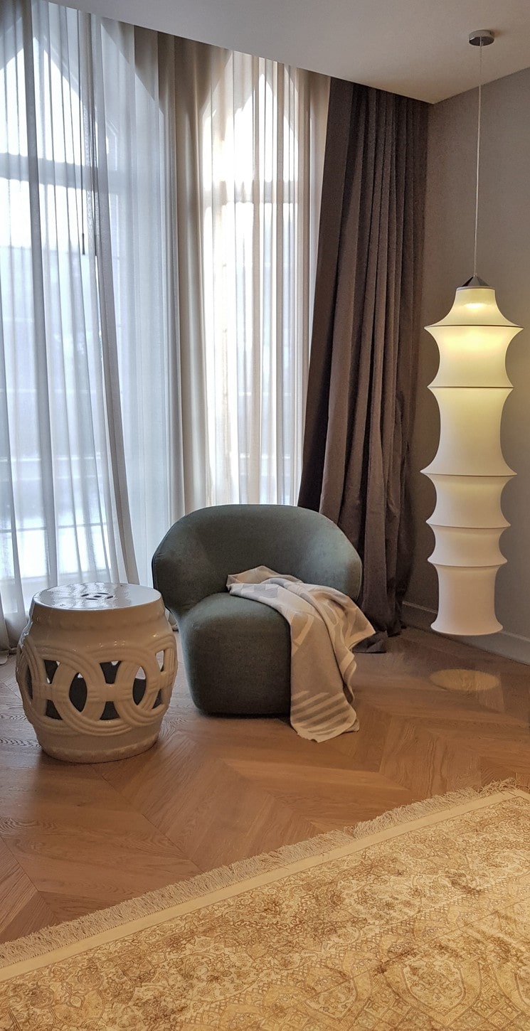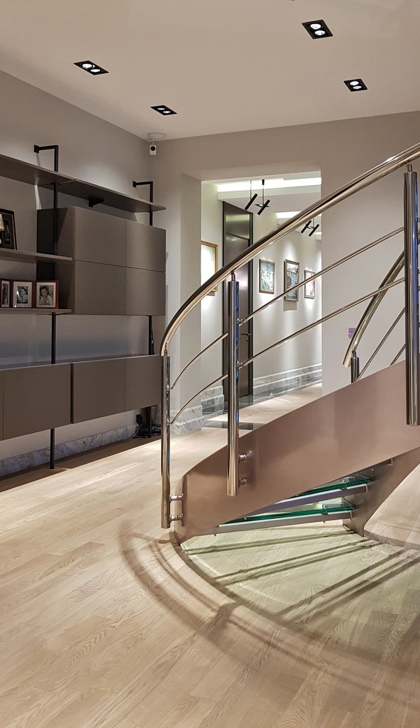 The concept of interior style mix. Powerful combination of: stone, wood, concrete, glass, gypsum & metal.