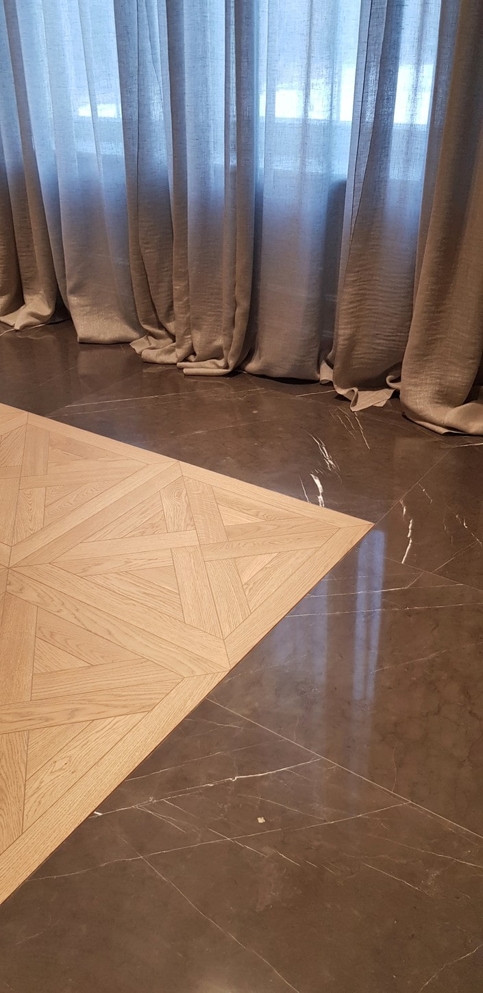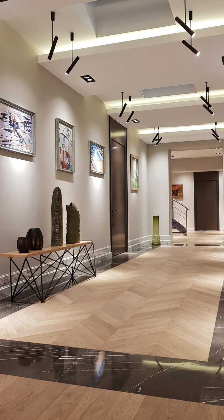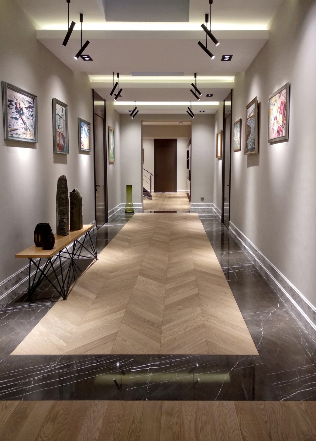Minimalist interior is decorated with the knights epoch elements. What makes the castle modern? – Coswick Chevron flooring, Coswick Mosaic flooring, Coswick Plank flooring. Which looks like a natural medieval carpet.