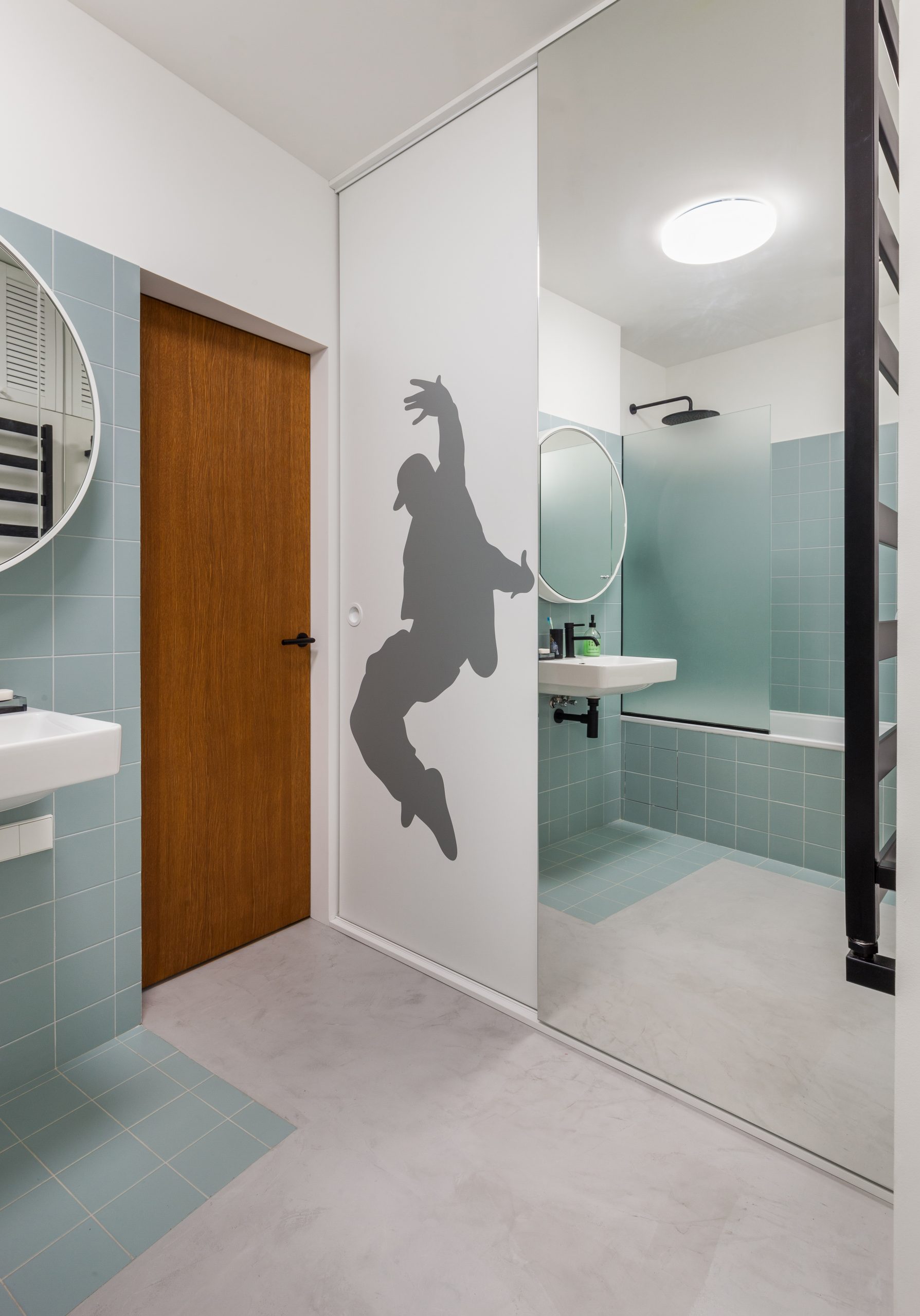 One of the interesting ideas of this project is “stairs” in the hallway. So the architects decorated a climbing frame inventing a backlit niche at the top. Now the owners of the apartments have a “stairway to the sky”. Almost like Zakharov’s Baron von Munchausen.