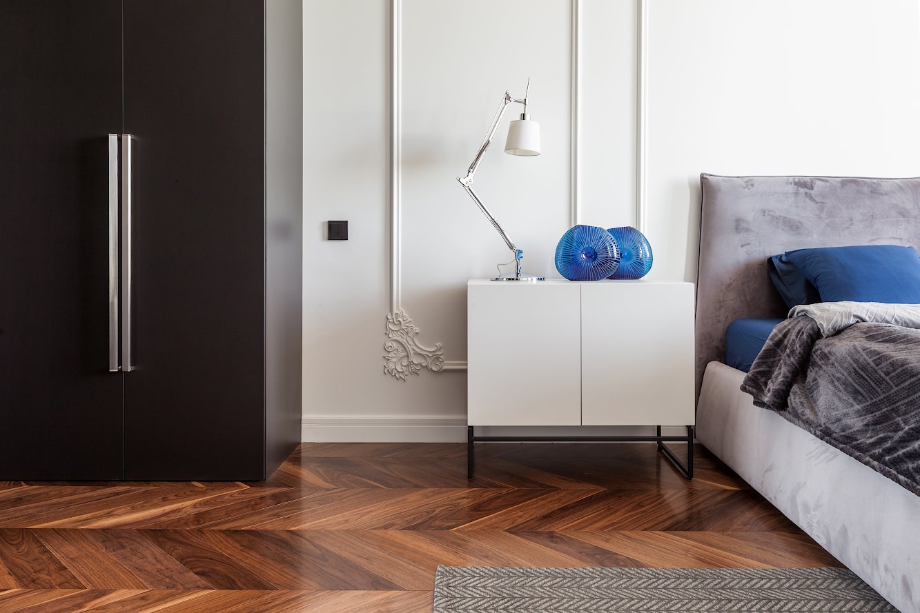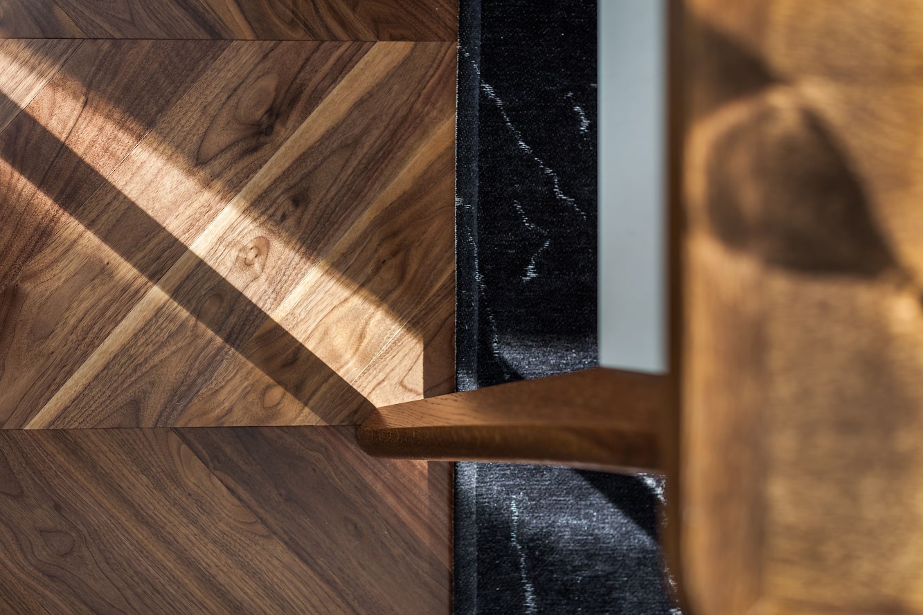 Coswick American Walnut Chevron flooring.