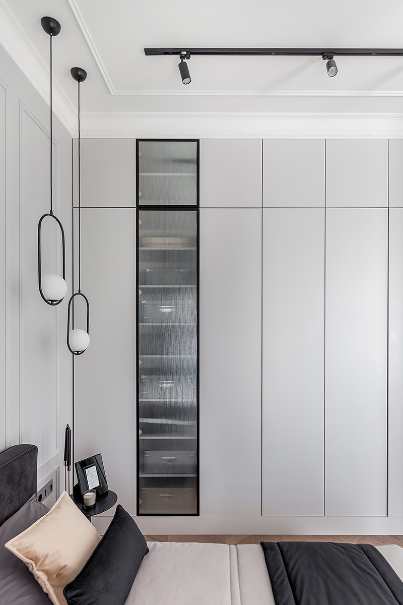 Elegant and functional apartment in modern classics style in Mayak Housing Complex, Minsk. The designers managed to include a kitchen, living room, separate bedroom, with a closed off balcony and a bathroom in just 47 sqm.