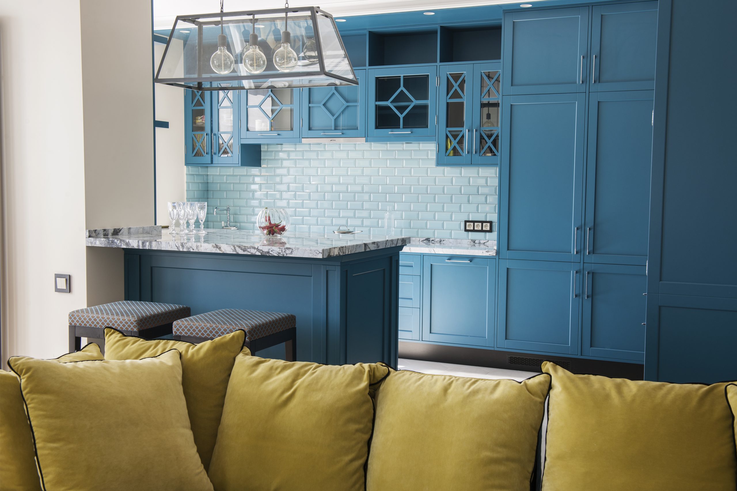 I appreciate the first color for its depth, expressiveness and perfect combination with all the bright colors. I like unexpected combinations, for example turquoise and faded tobacco – like in the bedroom, blue, ecru and violet – like in the nursery. Black and yellow, creating in the living room against the background of a peaceful range on the walls and in combination with a deep azure geometry effect, along with the sun and emotion. Always, as far as possible, I convince customers to be bolder in choosing a color. If it is difficult for them to decide on a colored wall, I persuade them to make at least decor. And people are often pleasantly surprised that in fact they like saturated colors.”