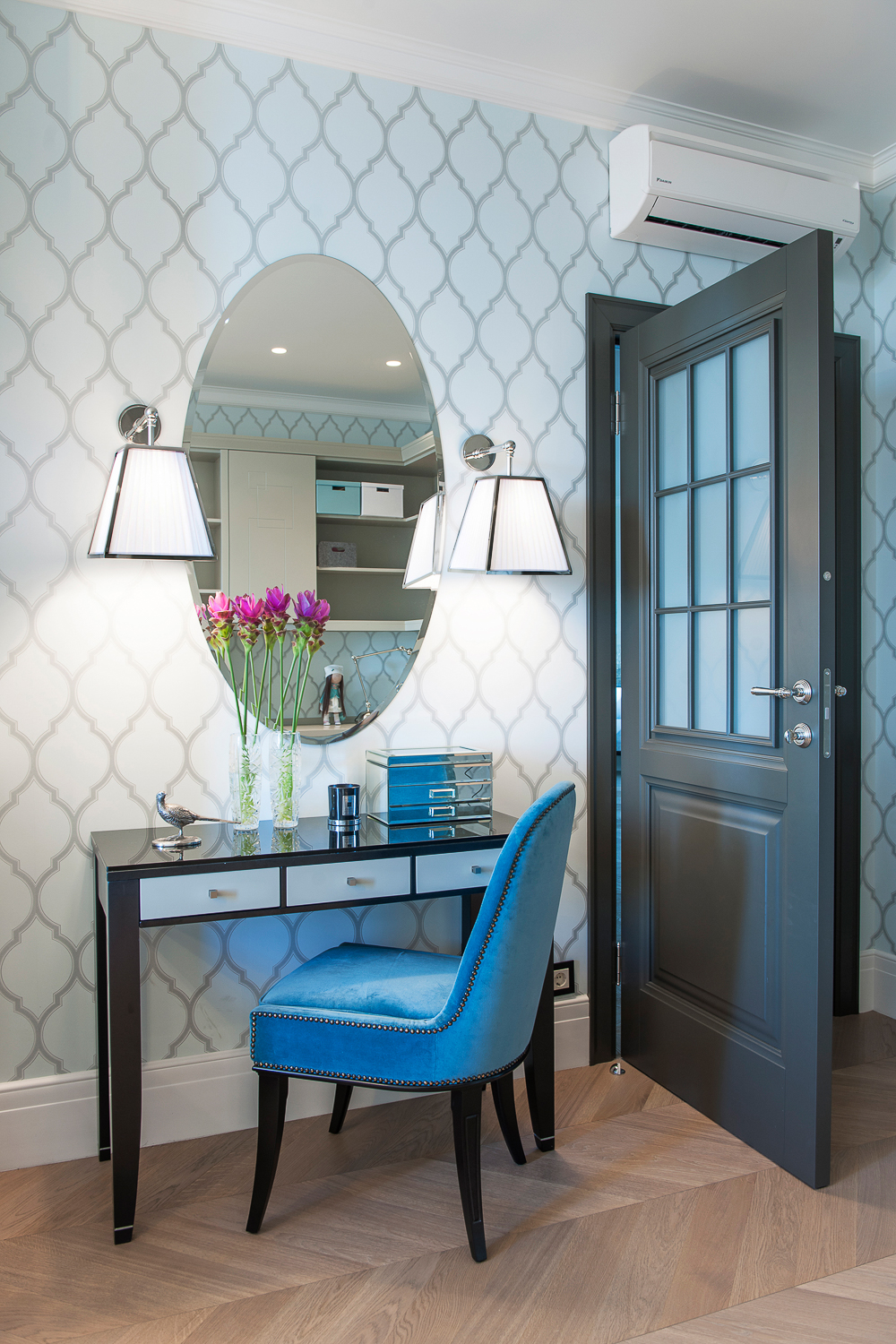 The design of this apartment for a young couple is a space that primarily reflects the lifestyle of the owners. They travel a lot and are in love with France, French ease of life, French cuisine, sophistication and flair for the French lifestyle.